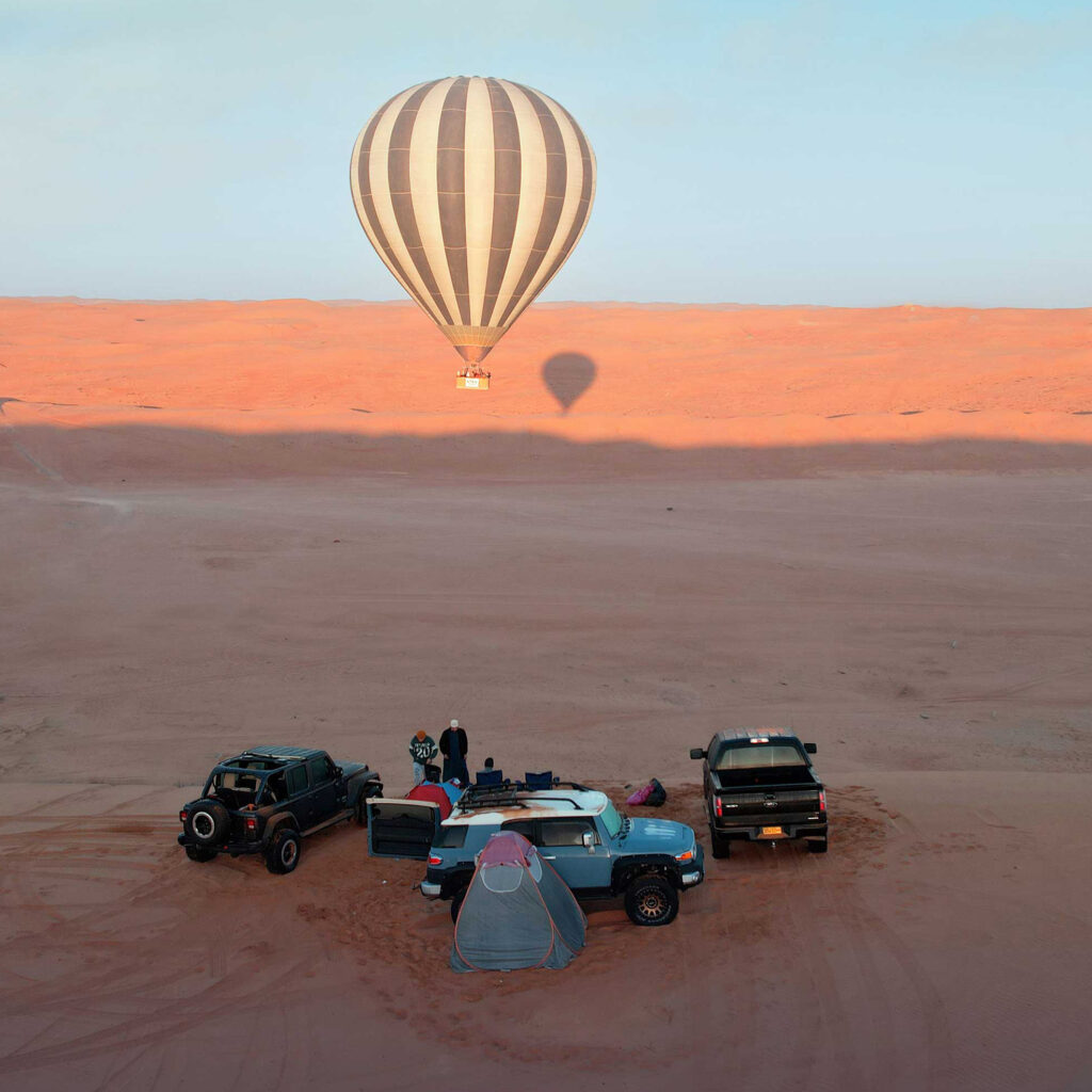The balloons will climb approximately 600 meters (2000 feet) during the flight. A panoramic and marvelous view will greet the passengers while gliding above scenic view of Sharqiya Sands. Balloons move by the wind and you will float wherever the wind takes you; so that each flight brings new and memorable experiences. Each passenger is to dress according to the temperature. Flat shoes, hat, sunglasses and of course camera is a must. The flight presents many photo opportunities and lifetime memories to cherish.